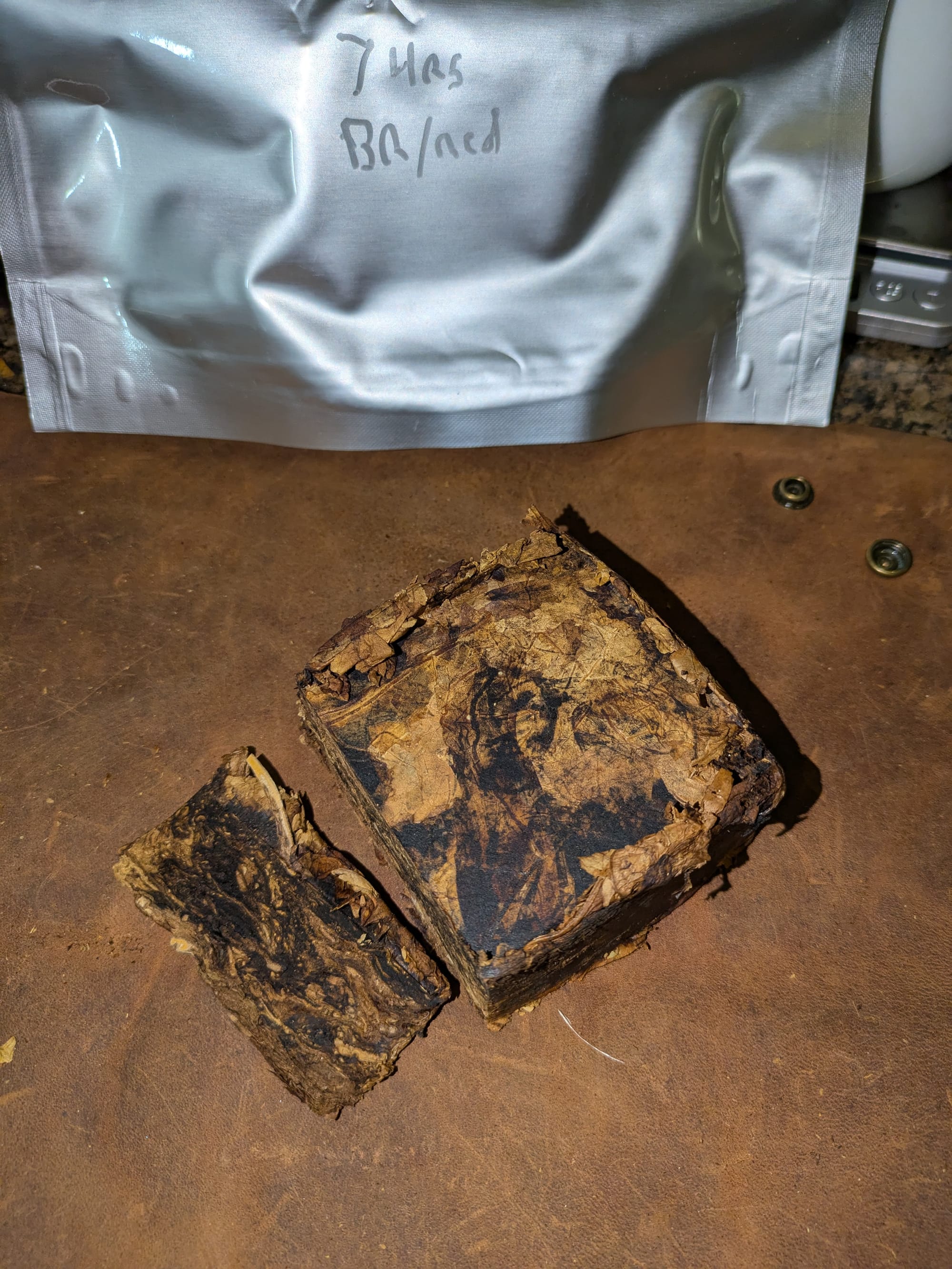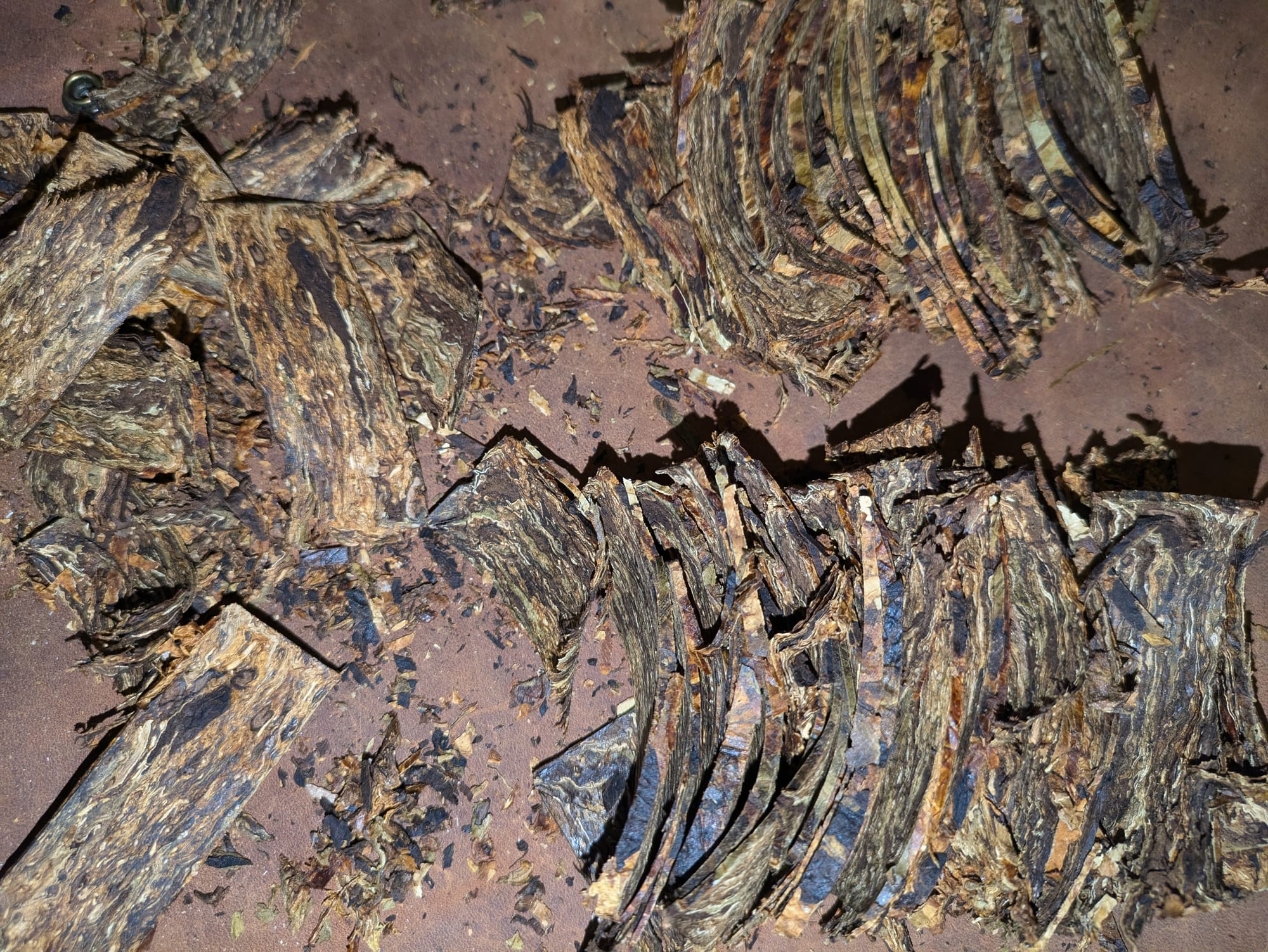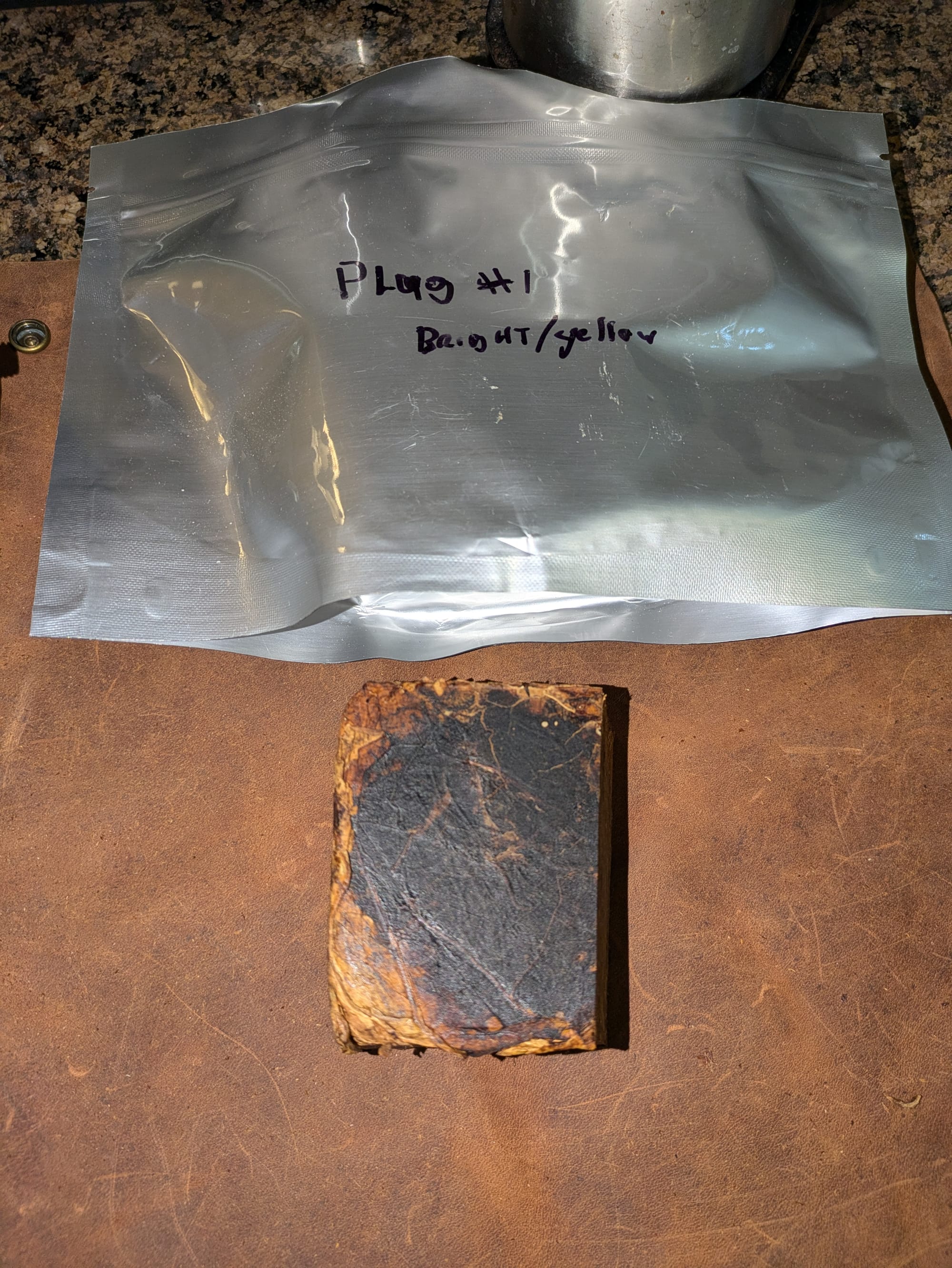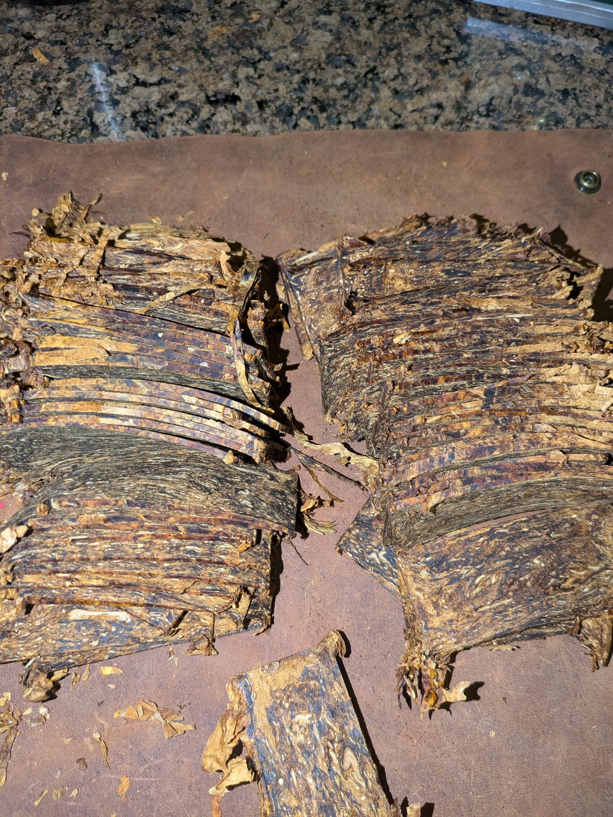 Decided to pull all the plugs I still have and flake them out. Plugs that I stoved in the oven were still moist and easy to slice. Plugs that stoved in a hot truck for 5 days was like trying to flake a 2 x 4. Ended up with a case of 16oz wide mouth Mason jars full of flakes. All the images below are straight Virginia’s except the last 2 images. Those are either Angel of Izmir or Basma Bastard.