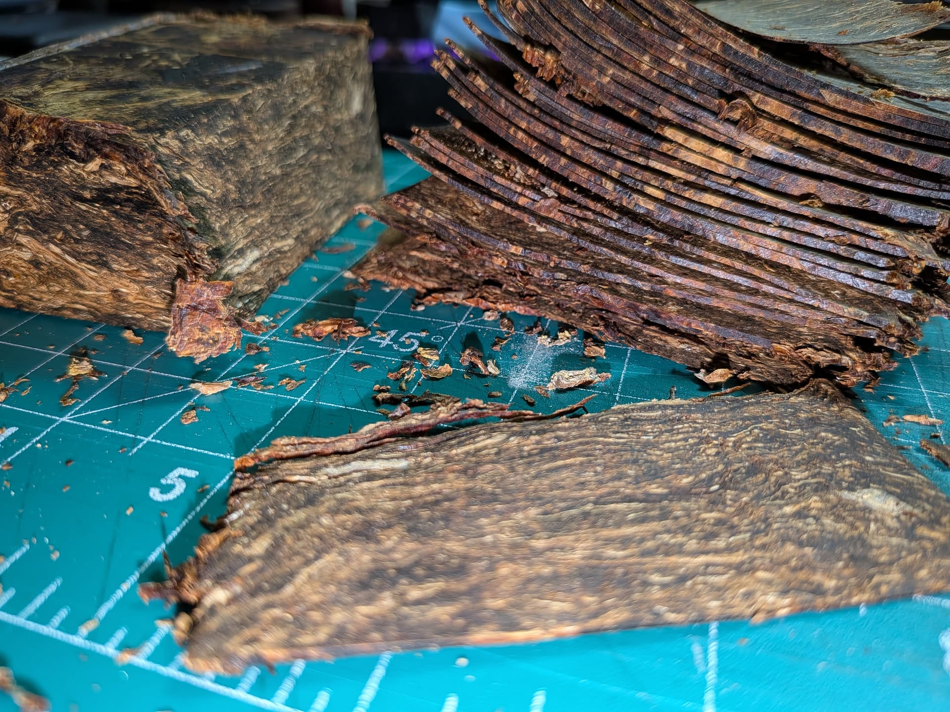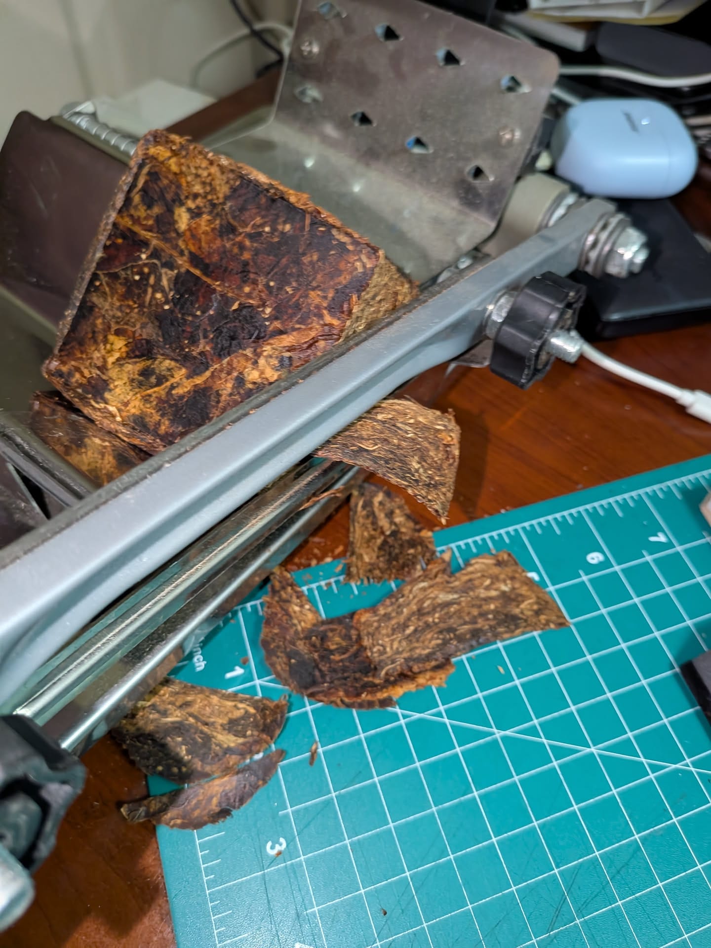 So I wanted to see if I took the time to calibrate the cutter, how thin you could you go cutting up a plug. Started with an all Virginia plug that I believe is all red and brights.