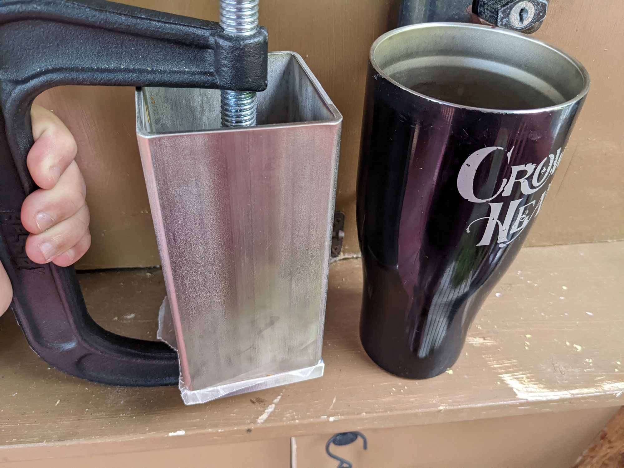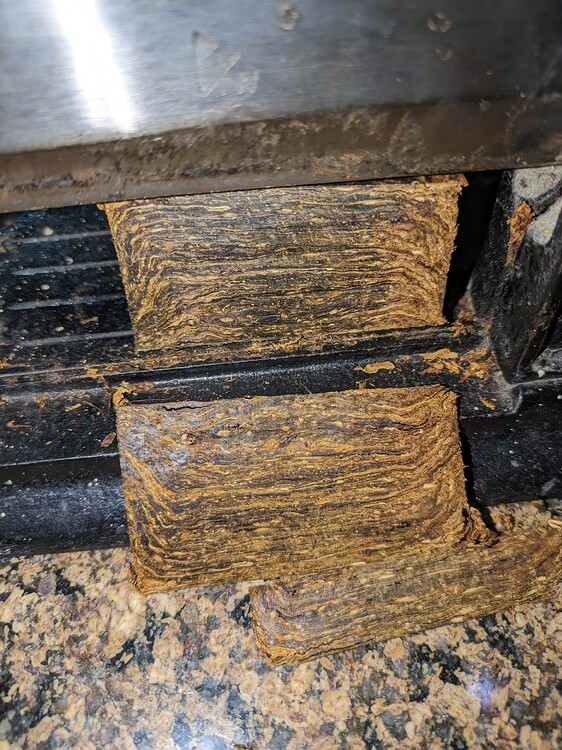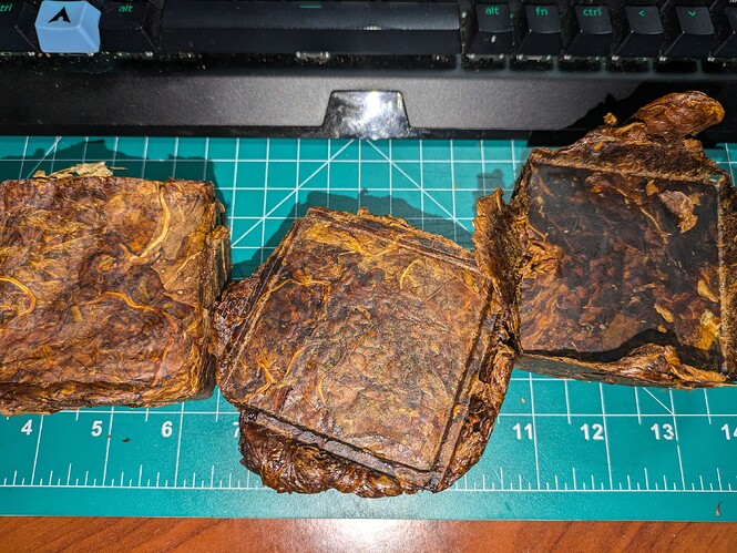 The plug total weight was about 8 ounces with the leaves hand ripped to smaller pieces and stuffed in an tube aluminum mold. It sure seemed to be a lot of tobacco. it was difficult getting it all in the and slip on a C-Clamp and cranked it down as far you can. Each day I was able to crank a little more. By the 10th day it was impossible to get it any tighter. At that point the whole mold went into a truck in the hot summer for 5 days.