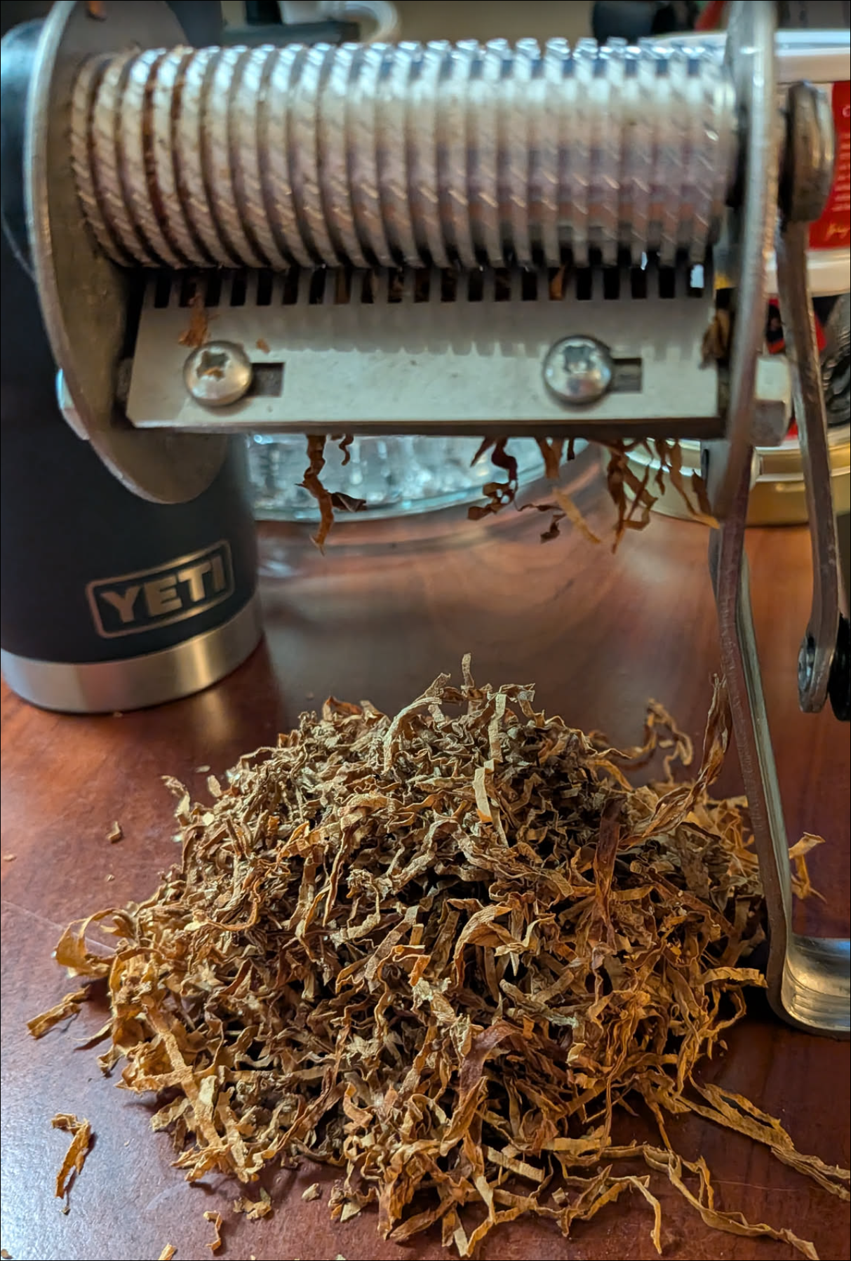 This all red Virginia de-stemmed and cased with tonka/blackberry and stoved for 10 hours.