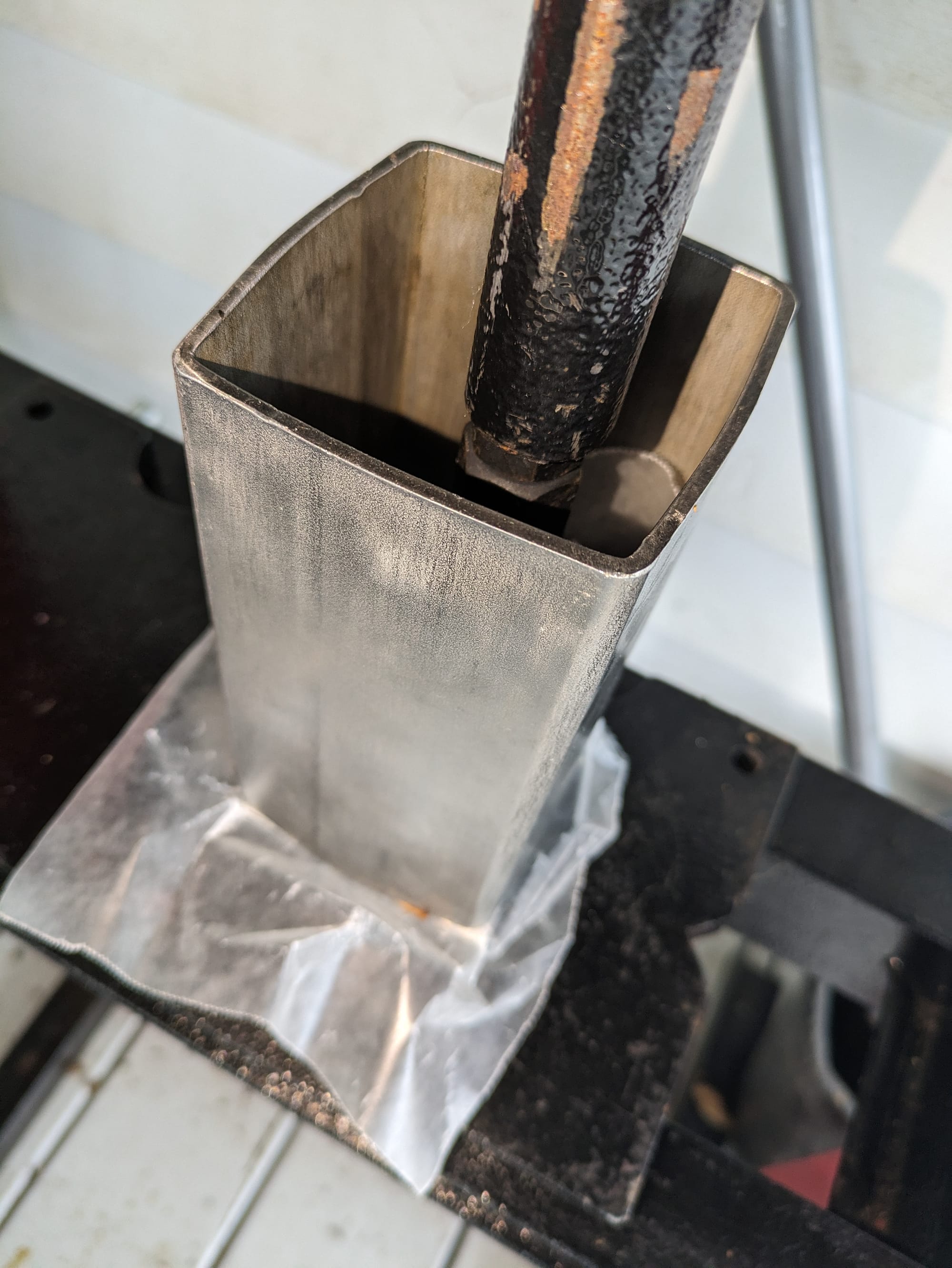 After compacted I pulled the form and put a C-Clamp on it. I will keep it pressed for about a week and then maybe stove.